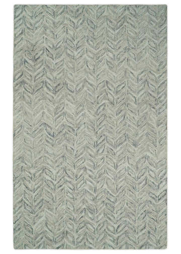 Custom Made Beige and Gray Leaf's Hand Tufted Modern Scandinavian Wool Loop Rug