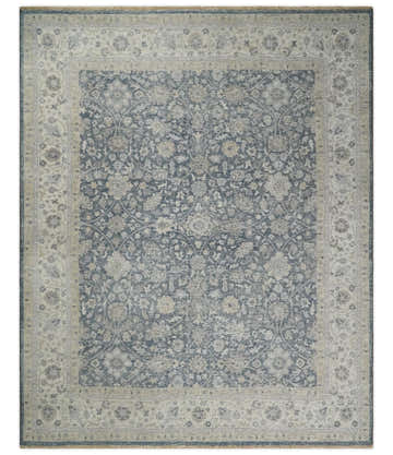 Antique Style Silver and Gray Traditional Hand knotted Oushak Custom Made wool Rug