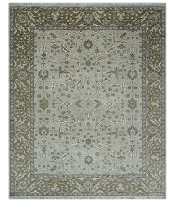 Antique Style Custom Made Traditional Silver and Brown Oriental Oushak Wool Area Rug