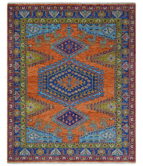 Hand Knotted Rust, Blue and Olive Traditional Multi Size Antique Wool Area Rug