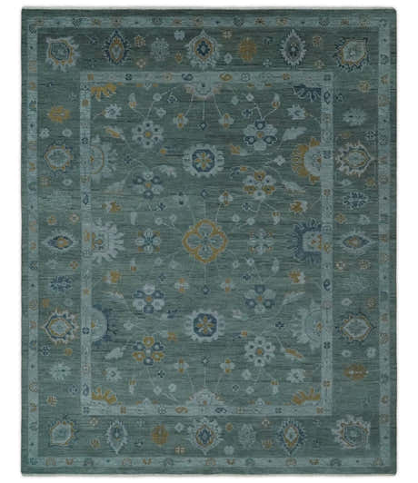 Custom Made Green, Silver and Olive Hand knotted Traditional Oushak Wool Area Rug