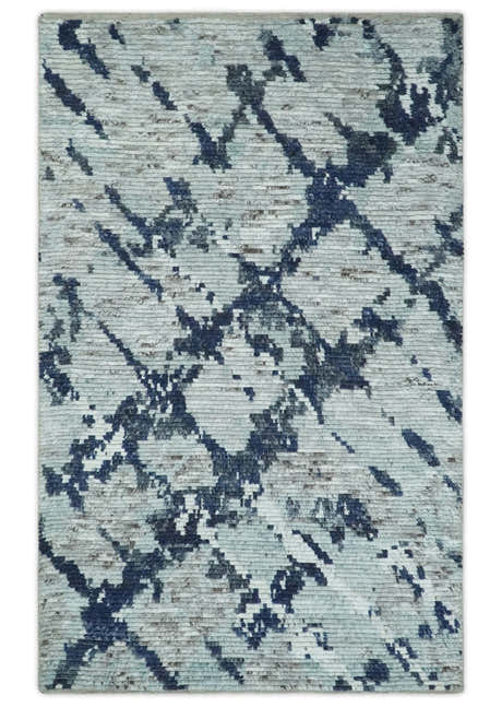 Hand Tufted Woolen Modern White and Blue Custom Made Area Rug