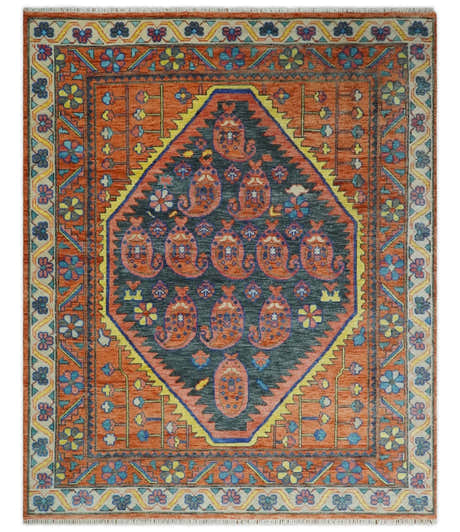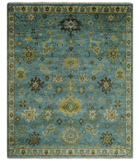 Hand Knotted Teal and Gold Traditional Oushak Multi Size Wool Area Rug