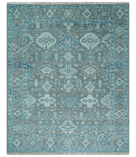 Antique Gray and Blue Hand Knotted 8x10 Oushak Turkish Wool Area Rug
