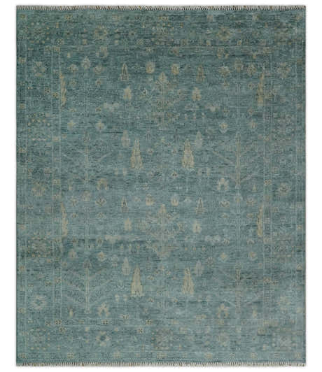 Custom Made Tree of Life Hand Knotted Teal and Beige Traditional Oushak Wool Area Rug