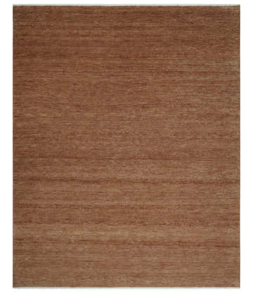 Contemporary Solid Brick Red Hand knotted Custom Made wool Area Rug