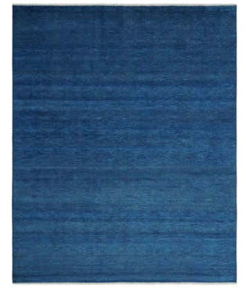 Solid Plane Blue Hand knotted Contemporary Custom Made wool Area Rug
