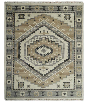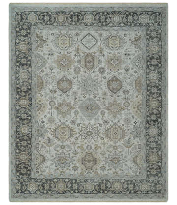 Antique Distressed finished Look Ivory, Charcoal and Beige Custom Made wool Area Rug
