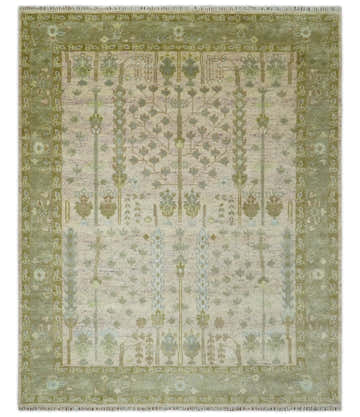 Tree of life Beige, Purple and Olive Hand Knotted Traditional Floral Custom Made wool rug