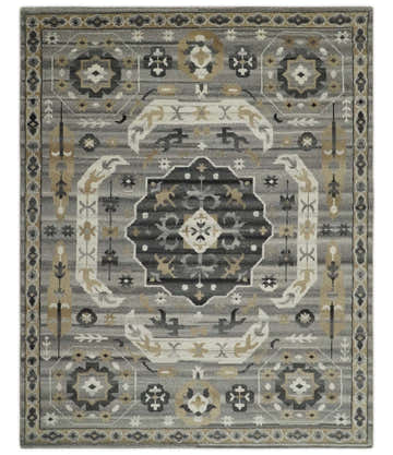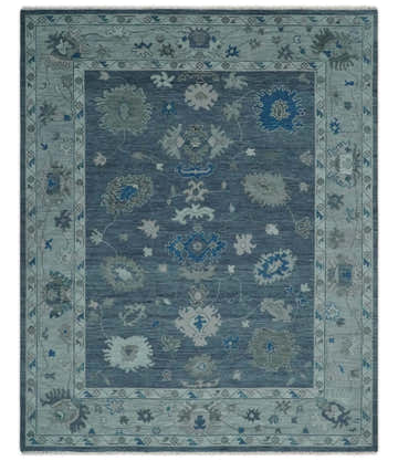 Charcoal and Silver Hand knotted Traditional Oushak Custom Made wool Area Rug