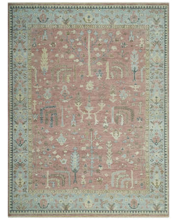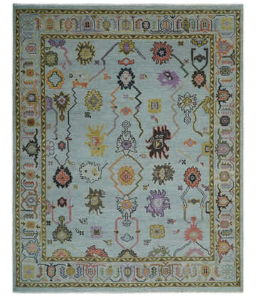 Custom Made Aqua and Green Hand knotted Traditional Oushak wool area Rug