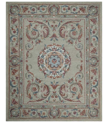French Inspired Aubusson design Custom Made Beige, Brown and Blue Hand Tufted wool Area Rug