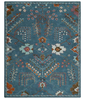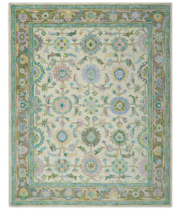 Teal, Gray and Beige Hand Knotted Traditional Oushak Custom Made wool Area Rug