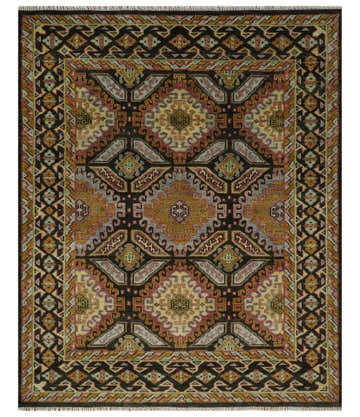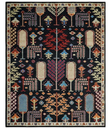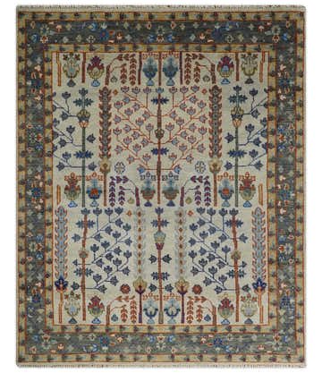 Distress Finished Tree of Life Hand Knotted Rust and Blue Custom Made Wool Rug