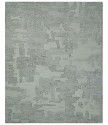 Hand Tufted Ivory, Silver and Blue Modern Abstract Custom Made wool Rug