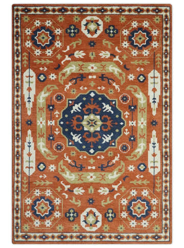 Rust and Blue Hand Knotted Traditional Medallion Mamluk Design Multi Size wool Rug