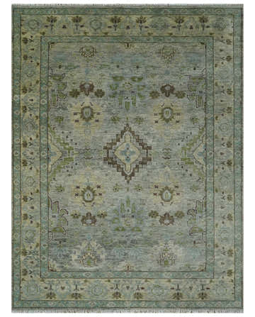 Custom Made Antique Style Green and Silver Hand knotted Traditional Oriental Oushak wool Area Rug
