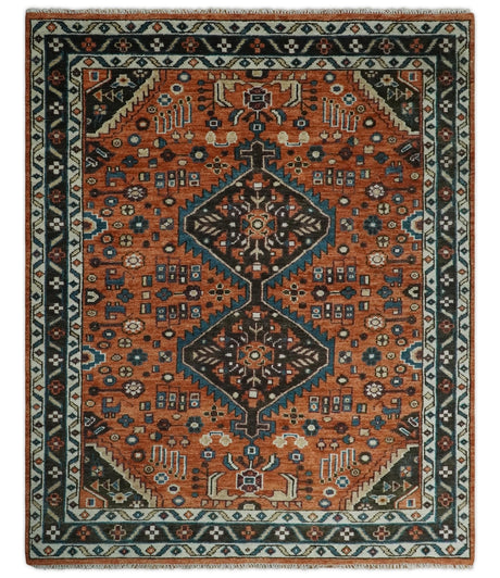 Vintage Style Hand Knotted Serapi Blue and Rust Traditional Custom Made Area Rug