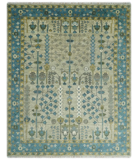 Tree of life Hand Knotted Traditional Beige and Blue Vintage Style Custom Made Wool Area Rug