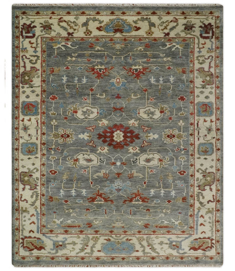 Antique Traditional Silver and Ivory Hand Knotted Oriental Oushak Multi Size wool Area Rug
