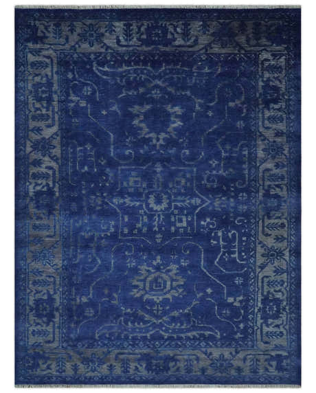 Blue and Gray Hand knotted Oriental Oushak Multi Size wool Area Rug