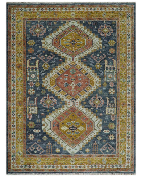 Rust, Gold and Gray Traditional Hand knotted Custom Made wool Area Rug