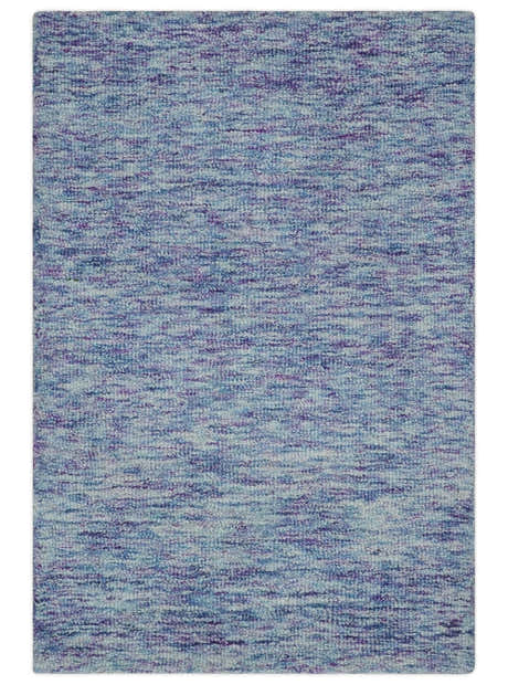 Ivory, Purple and Blue Abstract Solid Hand Tufted Natural Wool Rug