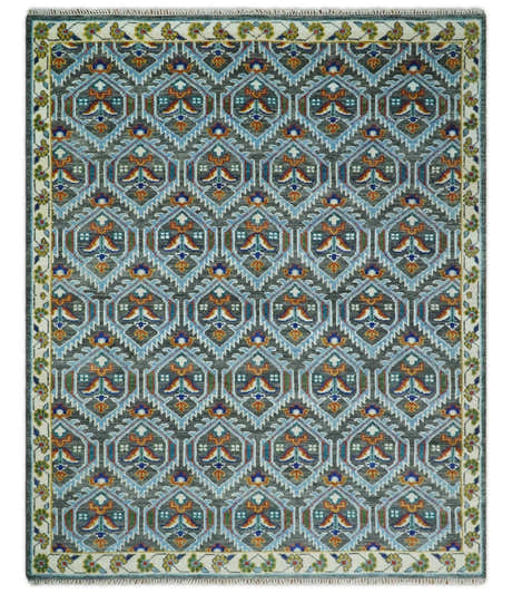 Blue, Silver and Brown Hand Knotted Traditional Oushak wool Rug