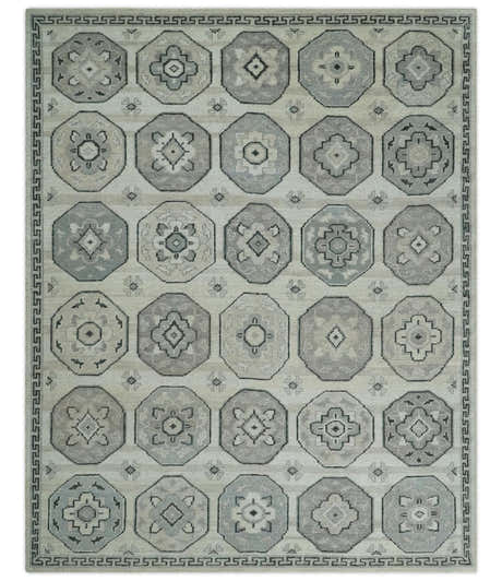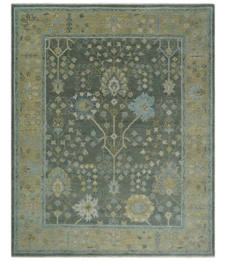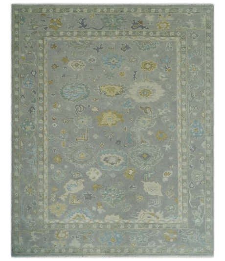 Gray and Olive Wool Colorful Hand knotted Traditional Oushak Multi Size wool Area Rug
