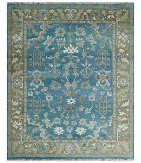 Custom Made Blue, Brown and Ivory Hand knotted Traditional Oushak Wool Rug