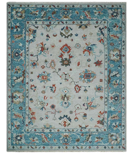 Antique Silver Hand knotted Traditional Multi Size Oushak Wool area Rug