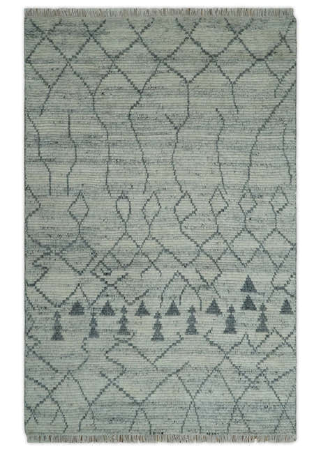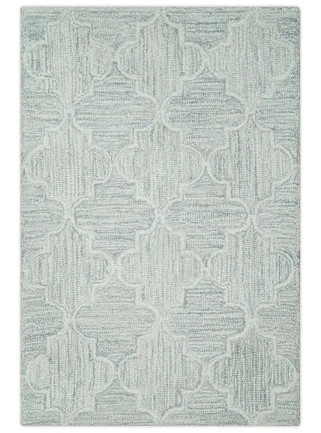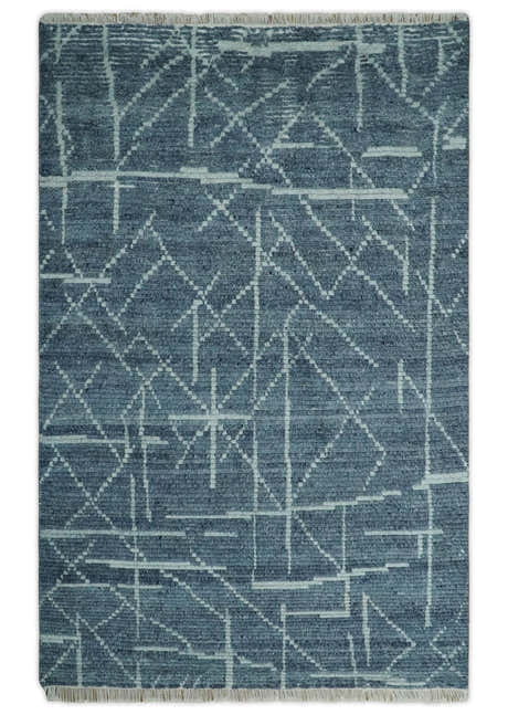Hand Knotted Blue and Silver Trellis Moroccan Rug Made with Blended Wool Multi size Rug