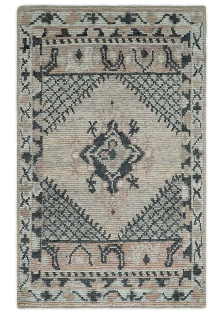 Hand Woven Peach, Beige and Charcoal Rug Made with Blended Wool Multi Size Rug