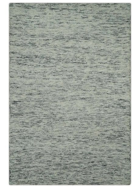 Modern Beige and Charcoal Solid Shaded Hand Tufted Natural Wool Area Rug