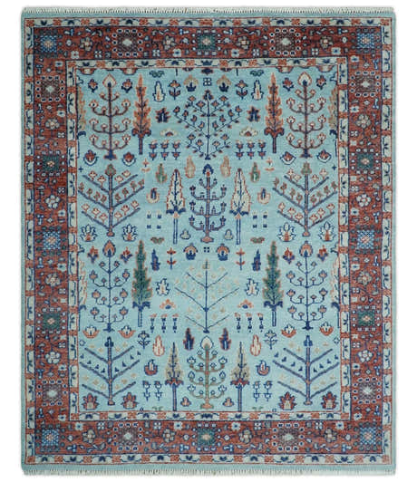 Tree of Life Hand Knotted Blue and Rust Modern Persian Vintage Oushak Custom Made Wool Rug
