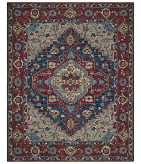 Red and Blue Hand Tufted Traditional Heriz Serapi Medallion Multi Size wool Area Rug