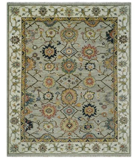 Hand Knotted Ivory, Gray and Blue Traditional Oushak Multi Size Wool Area Rug