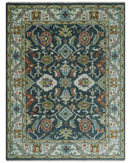 Teal and Ivory Traditional Hand Knotted Oriental Oushak Custom Made Wool Area Rug