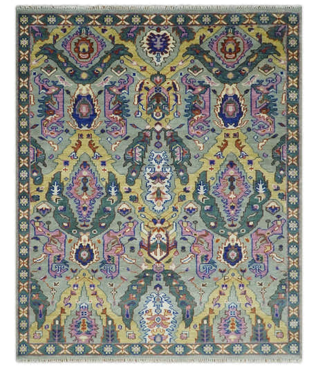 Hand knotted Green, Pink and Gold Traditional large design Antique Oushak Custom Made wool Area Rug
