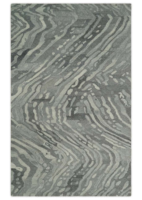 Custom Made Living Room Rug Hand Knotted Dark Gray and Beige Traditional Wool Rug