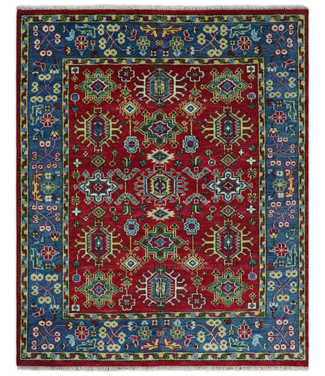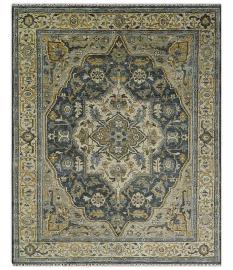 Custom Made Hand Knotted Blue, Ivory and Olive Traditional Oriental wool Area Rug
