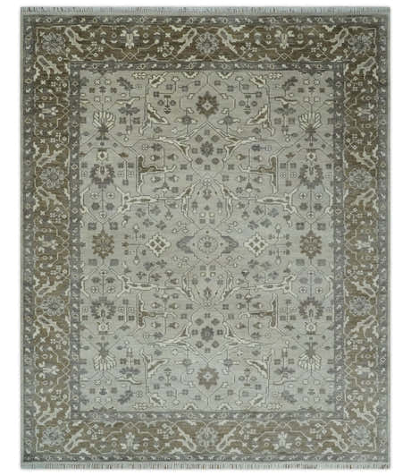 Antique Style Custom Made Traditional Silver and Brown Oriental Oushak Wool Area Rug
