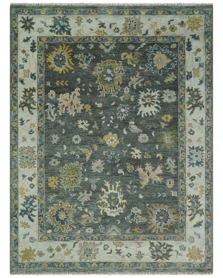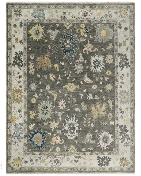 Charcoal and Ivory Hand Knotted Traditional Oushak Custom Made Wool Area Rug