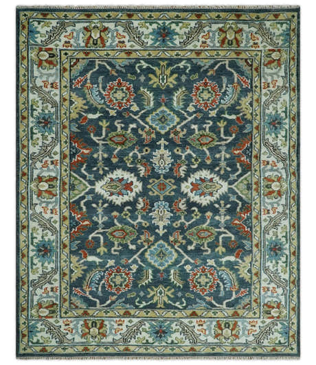 Custom Made Hand Knotted Teal, Blue and Ivory Traditional Oushak Wool Area Rug