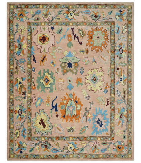 Vibrant Colorful Beige, Blue and Brown Traditional Oushak Hand Knotted Custom made Wool Area Rug