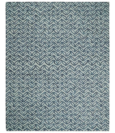 Contemporary Farmhouse Leaf's Hand Tufted Silver and Blue Loop Multi Size Wool Rug