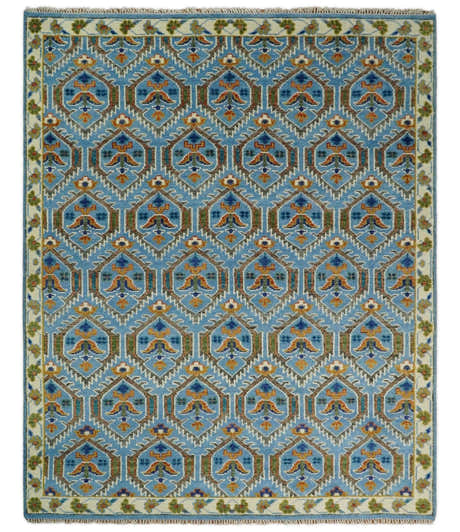 Hand Knotted Blue, Gold and Moss Green Vintage Style Custom Made wool Area Rug