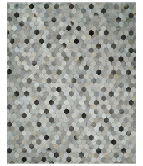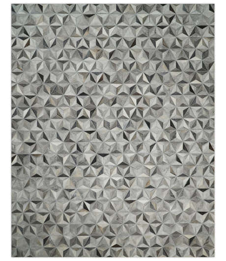 Custom Made Cowhide Leather Patchwork Silver and Gray Leather Modern Geometric Rug