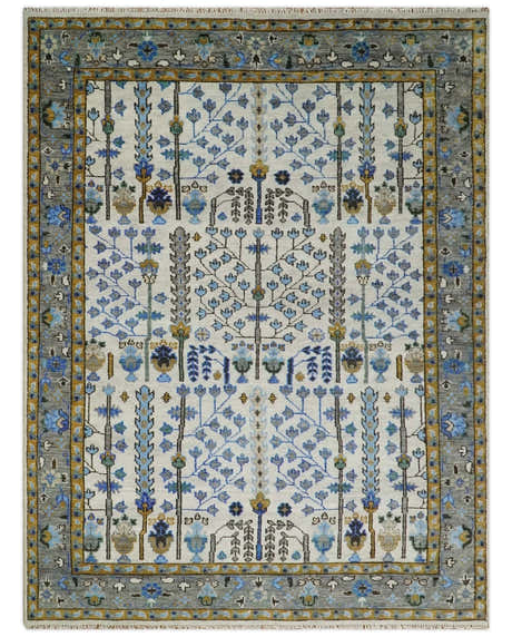 Custom Made Tree of life Hand Knotted Antique Ivory, Blue and Gray Traditional Oushak Wool area Rug