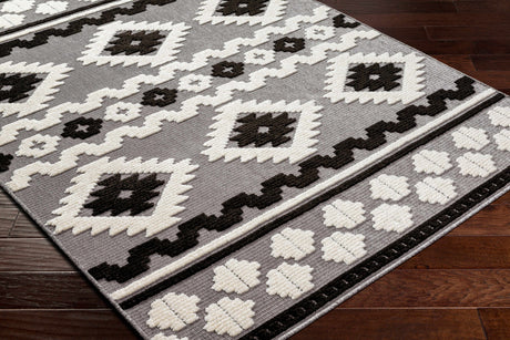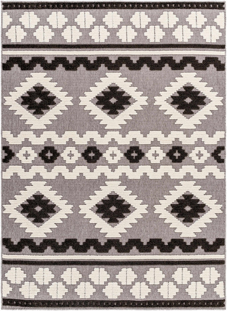 Bound to be a showstopper, these black and white southwestern rugs can make any space feel cozy and homey. It evokes a chic statement with its contemporary design and two-shaded pattern. This cool southwestern area rug keeps the décor theme simple while accentuating it subtly.